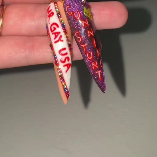A custom nail keychain serves as a business card-esque accessory that is tactfully sharp at the end, and has an nfc chip on the back that links to your social media, website, fundraiser, any link you'd like! Perfect for the business-minded baddie who wants to feel a lil safer on their way home from the gig!