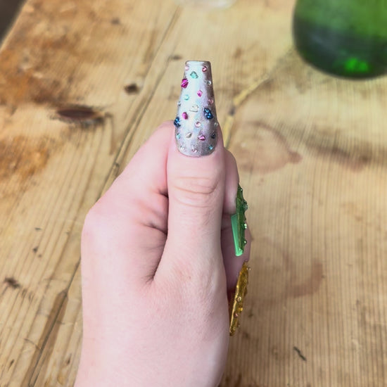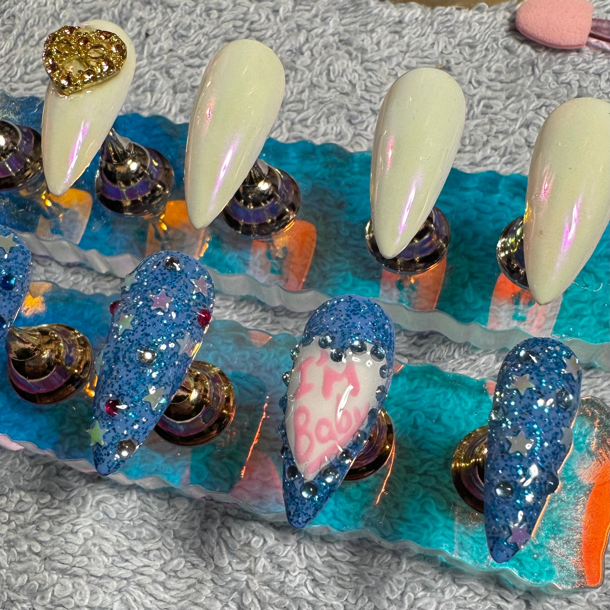 Book a 10-minute zoom call with me to discuss details including size, shape, design, timeline and pricing for your custom press-on nail set! Sliding scale pricing depends on the complexity of design (set with more detailed designs & charms will cost slightly more), I will do everything in my power to make it as financially accessible for you!